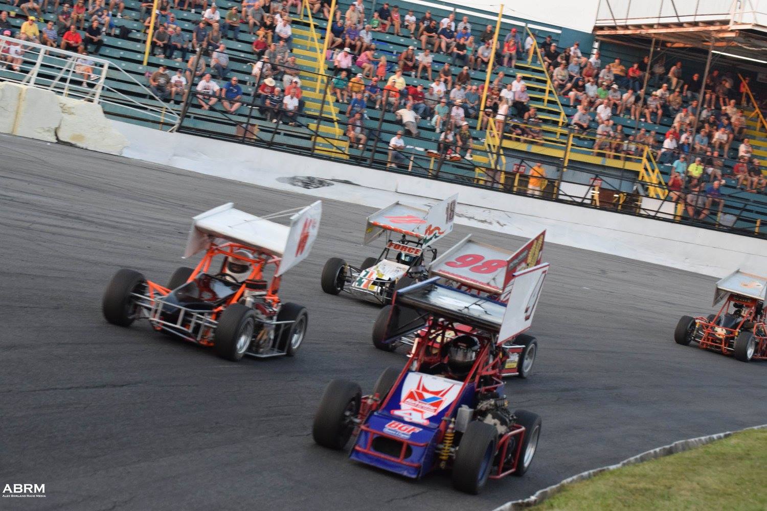 Young Joey Bailey of Helmetta, NJ inherited the lead in the ATQMRA Bud Classic at Oswego Speedway on the white flag lap and held off a hard charging Jon Gambutti to cement the Victory. Bailey followed a heated battle between Matt Janisch and Ryan Tidman before both were sidelined after the white flag was shown. Heat races were won by Janisch and Tidman. Gambutti finished second with Geoffrey Sutton on the podium in third. $175 was paid to each car that competed at Oswego with Bailey pocketing $350 for the win. Next up for the ATQMRA is a trip to Wall Stadium for wingless racing on the facility's inner oval on Saturday September 19th with the season points finale at Mahoning Valley Speedway in Lehighton on Saturday October 24th.
